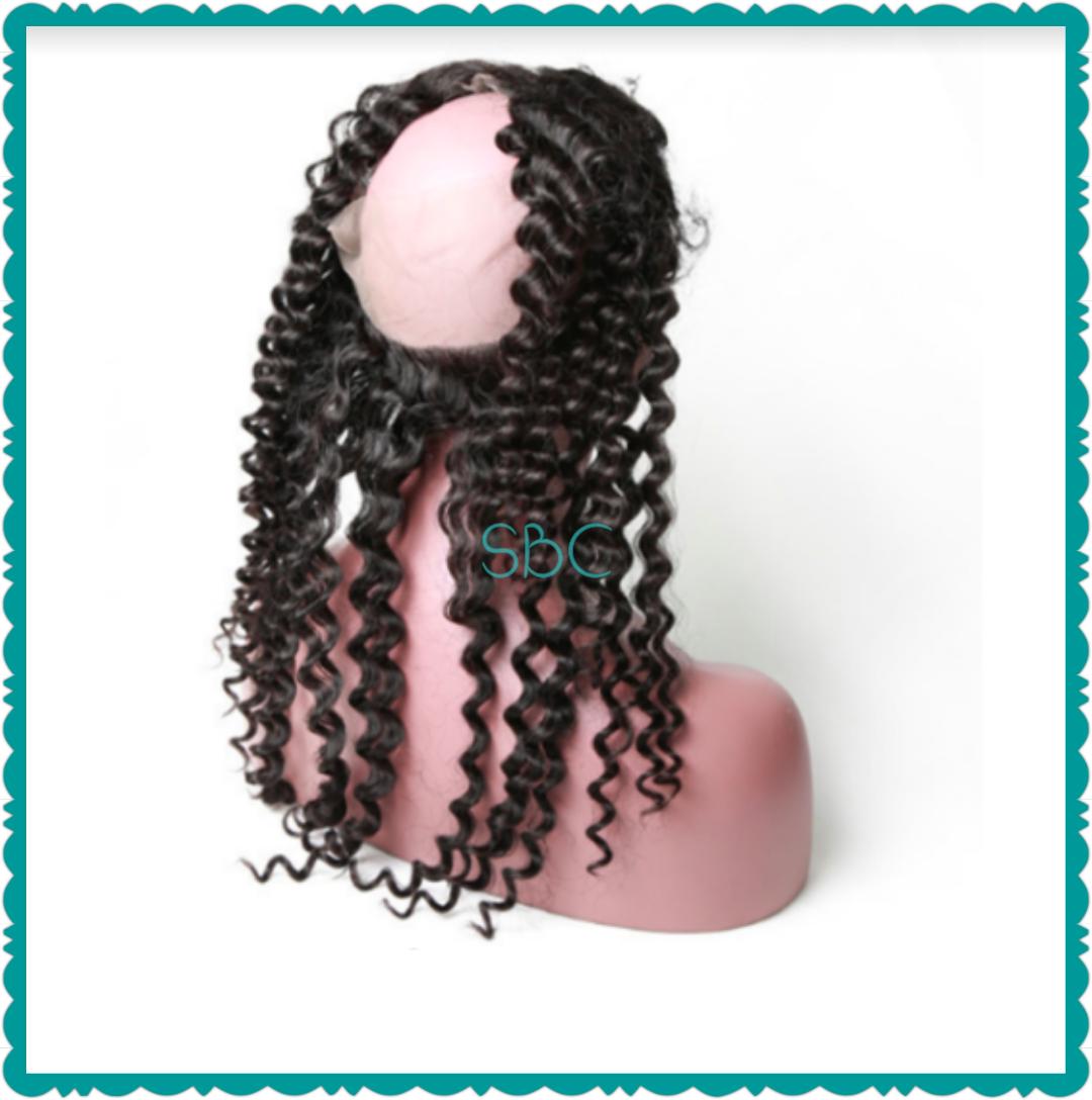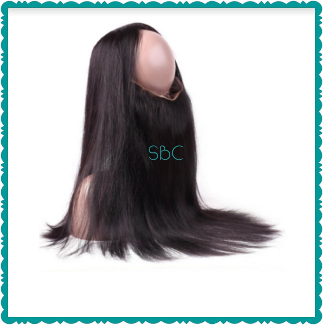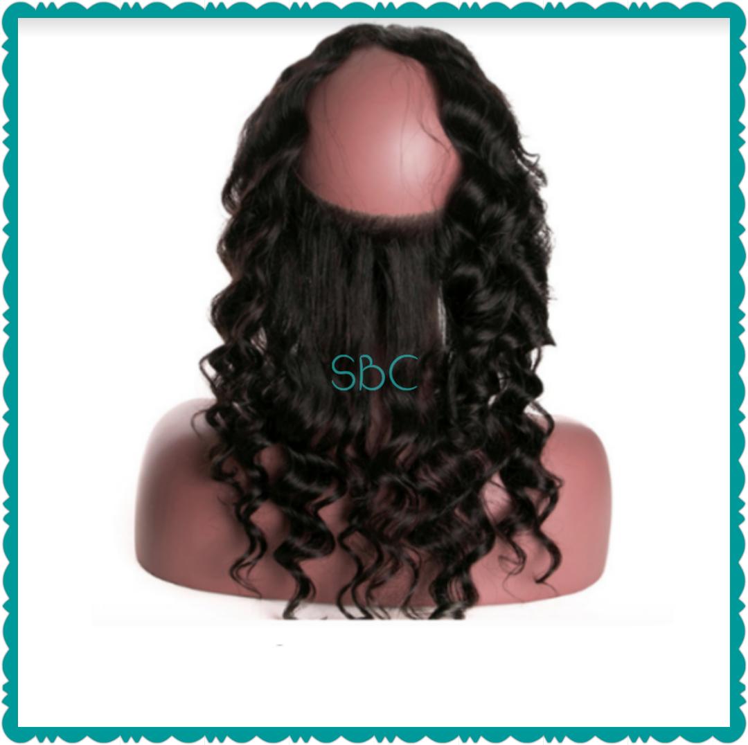 The 360 frontals are the perfect way to finish off your next sew-in. A 360 frontal recreates the hairline around the entire perimeter of your head and allows you to feel confident when your hair is pulled up in a high ponytail without having to cover your edges. These frontals are available in 16" - 20". They come in body wave, curly, deep wave, loose wave and straight patterns. To complete your desired look, pair with 2-3 bundles of the same texture.